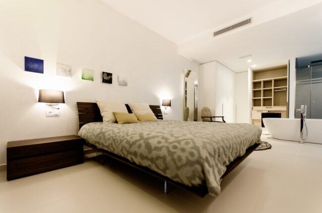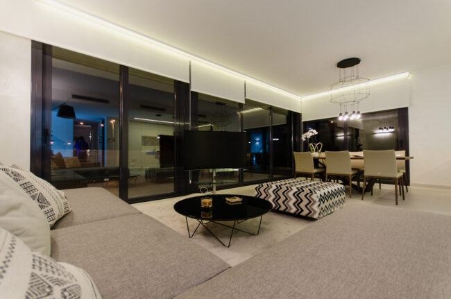 De villa is architectonisch indrukwekkend met moderne, strakke lijnen en grote schuifpuien die de grens tussen binnen en buiten vervagen. 's Avonds verandert de ambiance met sfeervolle verlichting die het zwembad en de terrassen in een betoverend licht zet, perfect voor avondentertainment of rustige nachten onder de sterren.