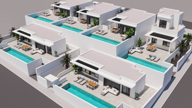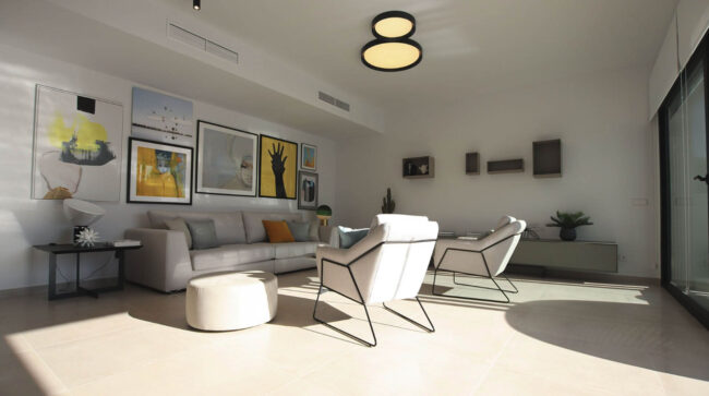 - Deze stijlvolle villa heeft een prachtig design. De woning van 265m² met 4 slaapkamers ligt op een perceel van 300m², en heeft een privé zwembad, ideale zonligging en uitzicht op de bergen. Verdeeld over 2 verdiepingen, bestaat de begane grond uit een open woonkamer en keuken die volledig openen naar het prachtige buitenterras en het azuurblauwe zwembad. De slaapkamers bevinden zich comfortabel in het gezellige souterrain, samen met een tweede entertainmentruimte die kan worden omgebouwd tot een extra slaapkamer. Alle slaapkamers hebben directe toegang tot de tuinpatio, waar op een warme zomeravond van de koelte kan worden genoten. Gebouwd volgens de hoogste normen en met functionele luxe, zijn deze villa’s zorgvuldig ontworpen om maximaal natuurlijk licht en open ruimtes te benutten. Vanuit de woonkamer loop je naar het prachtige, grote terras dat grenst aan het zwembad. Op de begane grond zijn er twee ruime slaapkamers, elk met een eigen badkamer en een aparte wasruimte. Op de eerste verdieping bevindt zich de derde (master) slaapkamer met een en-suite badkamer, een ruime inloopkast en twee dubbele schuifdeuren die toegang geven tot het ruime terras. Vanaf dit terras heb je een nog beter uitzicht op de mooie omgeving en het beroemde zoutmeer van La Mata. Gelegen in de gewilde woonwijk Quesada, omgeven door sinaasappel- en citroenboomgaarden in een prachtige mediterrane omgeving. Met de populaire 18-holes golfbaan van La Marquesa op slechts enkele minuten afstand, biedt het gemakkelijke toegang tot diverse sportfaciliteiten, een fitnesscentrum, spa, tennis- en paddlebanen, natuurgebied Recorall en fiets- en wandelpaden. De ideale plek voor sport- en strandliefhebbers, op slechts een paar minuten rijden van de golf- en countryclub en de blauwe vlag stranden in de omgeving. Het huis ligt dicht bij restaurants, winkels en je rijdt gemakkelijk naar steden als Torrevieja, Guardamar del Segura, Murcia en natuurlijk het mondaine Alicante. Deze woningen zijn gebouwd op een geweldige locatie voor het hele jaar door wonen, ideaal voor gezinnen om te genieten van alles wat het mediterrane leven te bieden heeft.