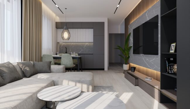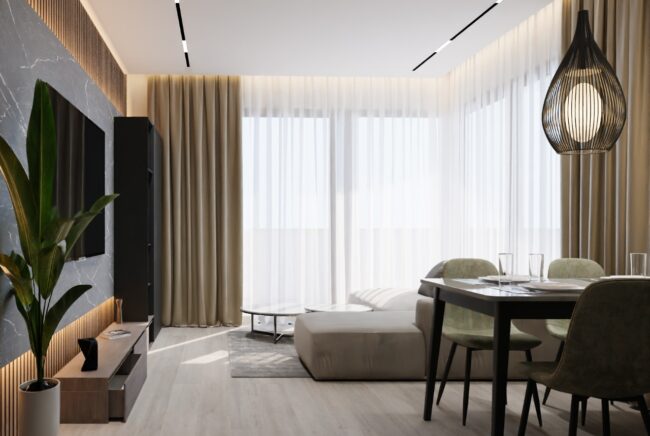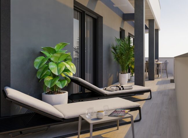 De appartementen zijn voorzien van alle gemakken en beschikken over ruime, lichte kamers. Elk appartement heeft een eigentijdse afwerking, inclusief hoogwaardige keramische tegels en moderne voorzieningen. De zonnige terrassen bieden een perfecte plek om te ontspannen en te genieten van de mediterrane zon.