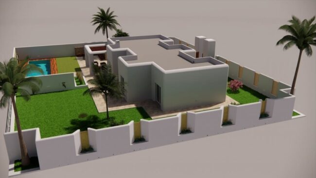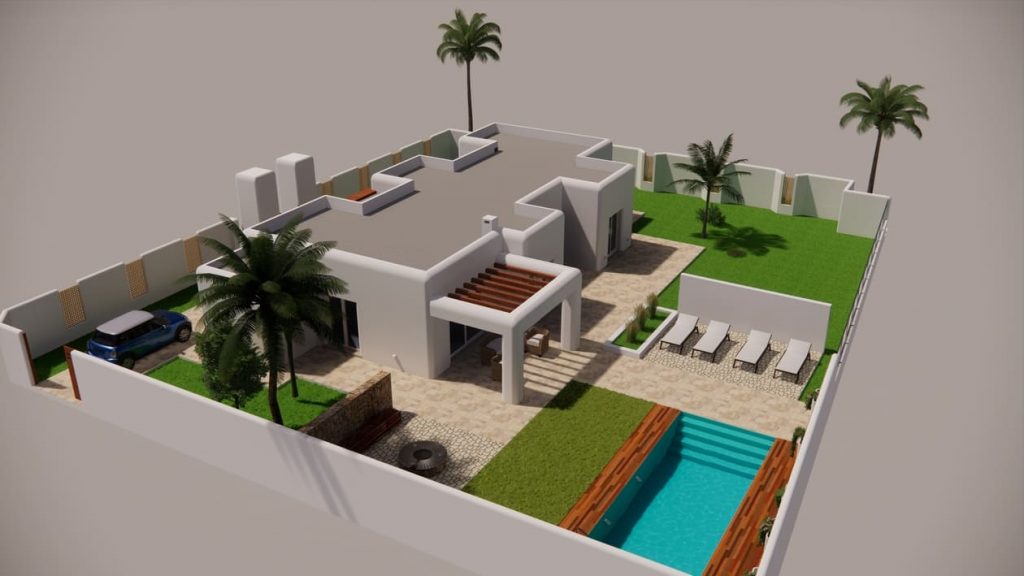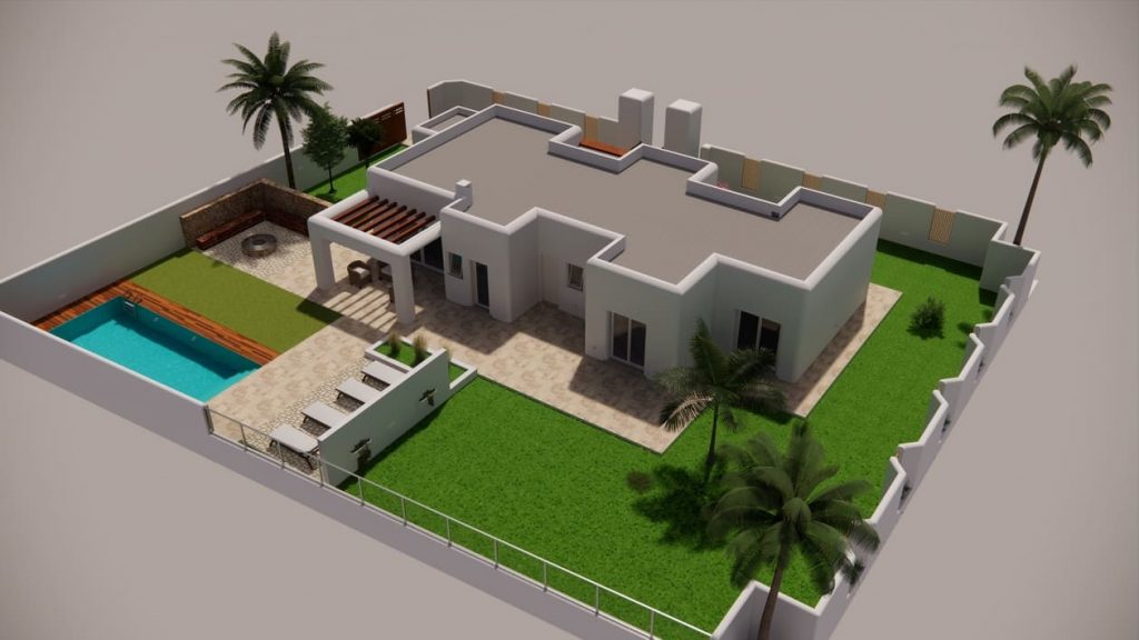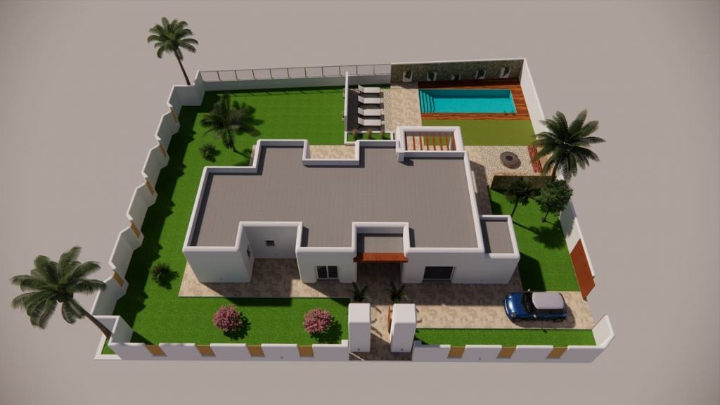 De vrijstaande villa beschikt over drie ruime slaapkamers op de begane grond. Er zijn twee moderne badkamers, waaronder een en-suite, een ruime woonkamer met geïntegreerde keuken, en een gastentoilet. Buiten bevindt zich een royaal zwembad met externe badkamer, een pergola en een praktische berging. Er is parkeergelegenheid voor drie voertuigen, zodat bezoekers altijd welkom zijn. De totale bebouwde oppervlakte, inclusief de pergola, bedraagt 155,29m2.