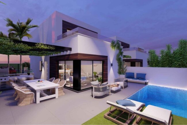 • Unieke kans op een luxe villa in de gewilde wijk La Florida, op slechts 800 meter van Playa de la Colonia. Deze elegante woningen combineren comfort, moderne architectuur en een ideale ligging aan de Costa Cálida.