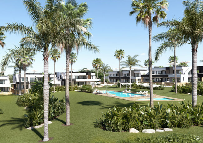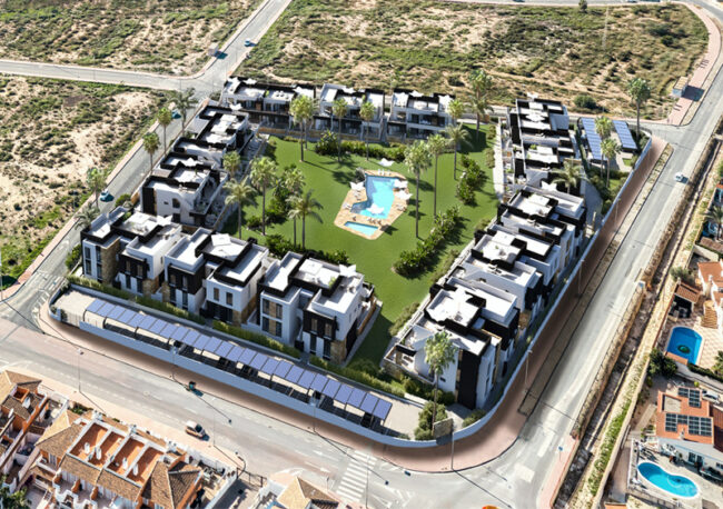 Dit prachtige project biedt moderne woningen die geschikt zijn voor eigen gebruik en potentieel als investering. Gelegen in een rustige en aantrekkelijke omgeving, bestaat het project uit vrijstaande villa's en appartementen, met een keuze tussen een woning op de begane grond met eigen tuin of een woning op de bovenste verdieping met een privé solarium. Deze woningen beschikken over twee slaapkamers en twee badkamers, allemaal op één verdieping.Uitgebreide Voorzieningen