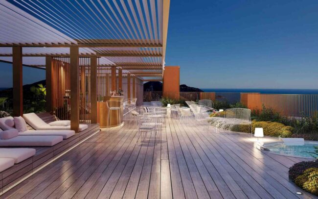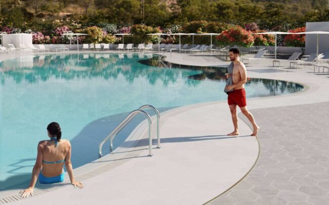 Het complex beschikt over diverse faciliteiten die bijdragen aan een luxueuze leefstijl. Bewoners kunnen genieten van meerdere zwembaden, een modern fitnesscentrum, en een ontspannende jacuzzi met uitzicht op zee. Voor gezinnen is er ook een kindvriendelijke speelruimte en een solarium beschikbaar. Daarnaast zorgen de 24-uurs beveiliging en de exclusieve privé-omgeving voor extra veiligheid en comfort.