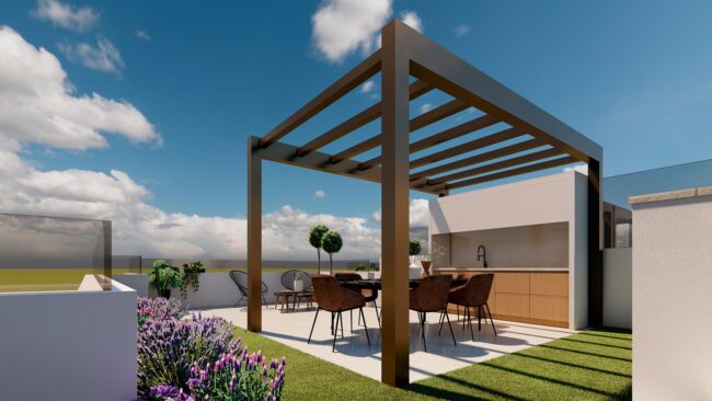In het hart van San Pedro del Pinatar, aan de zonovergoten Costa Cálida in Murcia, bevindt zich een exclusief complex van vrijstaande en geschakelde villa's. Deze woningen combineren een modern ontwerp met oog voor detail en bieden een prachtig uitzicht op het groene landschap en de diepe blauwe Middellandse Zee. De ligging, op slechts enkele meters van Lo Pagán en de stranden van de Mar Menor, zorgt voor een unieke mix van natuur, comfort en luxe.