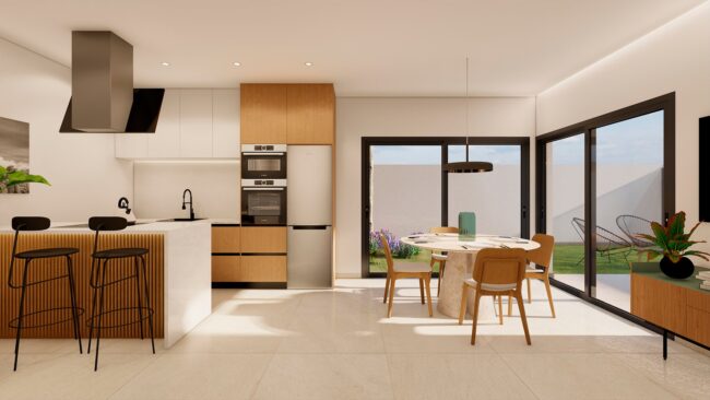 De villa’s zijn voorzien van ruime leefruimtes en een functionele indeling die volledig is afgestemd op hedendaags wooncomfort. Elk detail weerspiegelt de hoogwaardige afwerking. Vier van de woningen beschikken over een privézwembad en alle villa’s hebben een eigen parkeerplaats, wat bijdraagt aan het gevoel van luxe en gemak.Perfect gelegen aan de Middellandse Zee