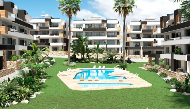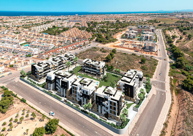 Gelegen in het hart van Orihuela Costa, biedt dit nieuwbouwproject met 112 moderne appartementen de perfecte combinatie van comfort en stijl. Elk appartement beschikt over twee slaapkamers en twee badkamers, ontworpen met een focus op luxe en functionaliteit. De ruime terrassen bieden een prachtig uitzicht op de groene omgeving en zijn ideaal om te genieten van het mediterrane klimaat.