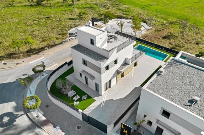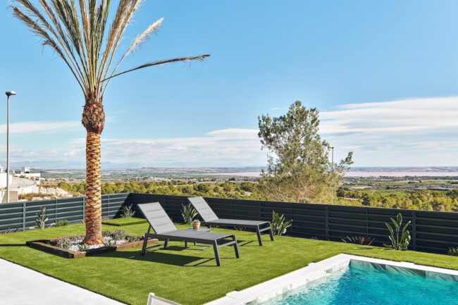 Aan de rand van het charmante dorp San Miguel de Salinas vind je deze moderne villa’s, gelegen op percelen van circa 300 tot 500 m². Elke woning is volledig omheind, voorzien van een elektrische poort en een eigen parkeerplaats. De tuinen zijn volledig aangelegd met een privé zwembad, een volwassen olijfboom en een palmboom, wat zorgt voor een sfeervol en tropisch geheel.