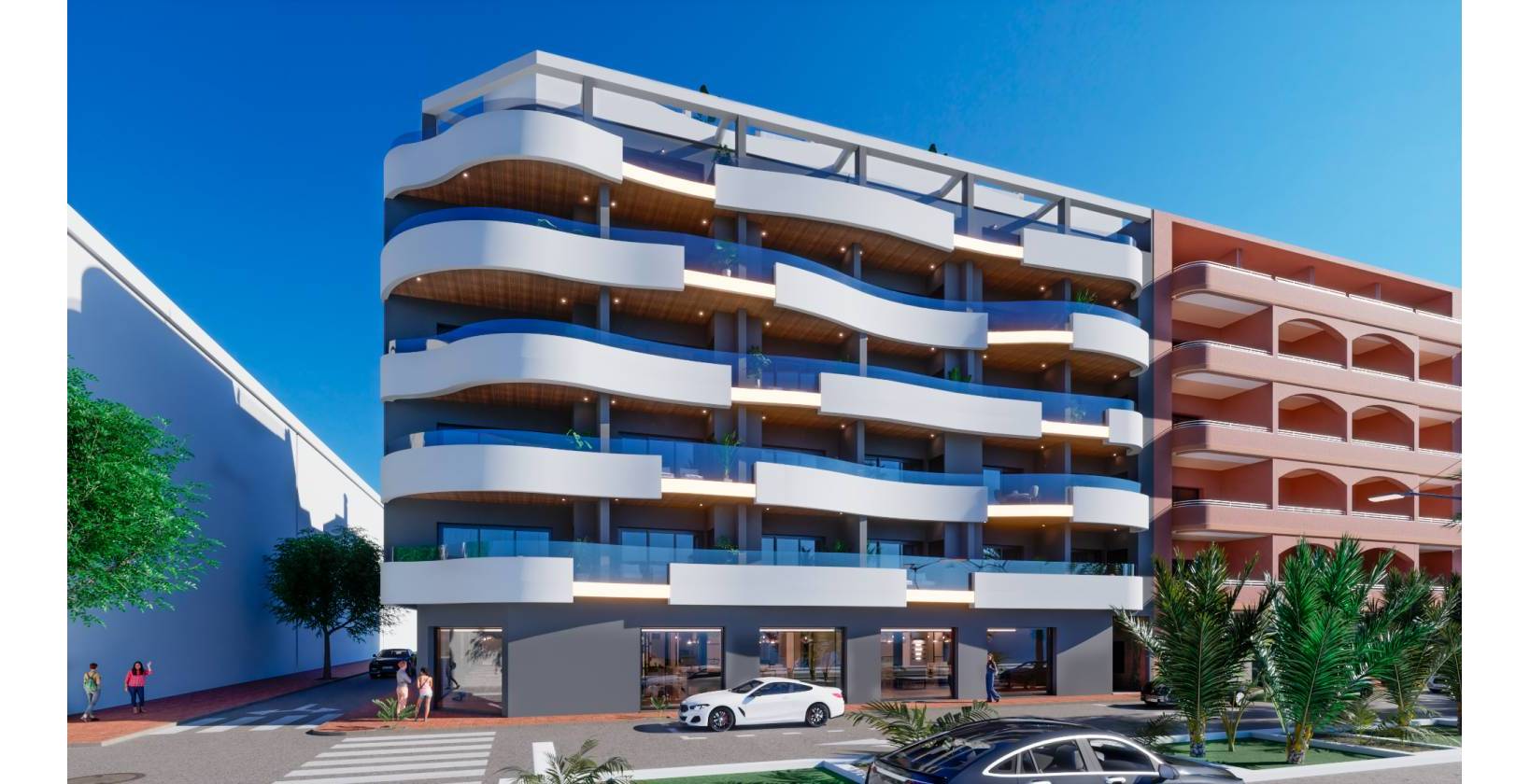 Gelegen in het hart van Torrevieja biedt dit nieuwbouwproject een geweldige kans voor wie op zoek is naar een moderne woonervaring in een levendige, stedelijke omgeving. Het project omvat 34 hoogwaardige appartementen, strategisch gelegen aan de Avenida de las Habaneras. Bewoners kunnen genieten van een gemeenschappelijk zwembad op het dak – de ideale plek om te ontspannen met een panoramisch uitzicht en elke avond te genieten van de zonsondergang.