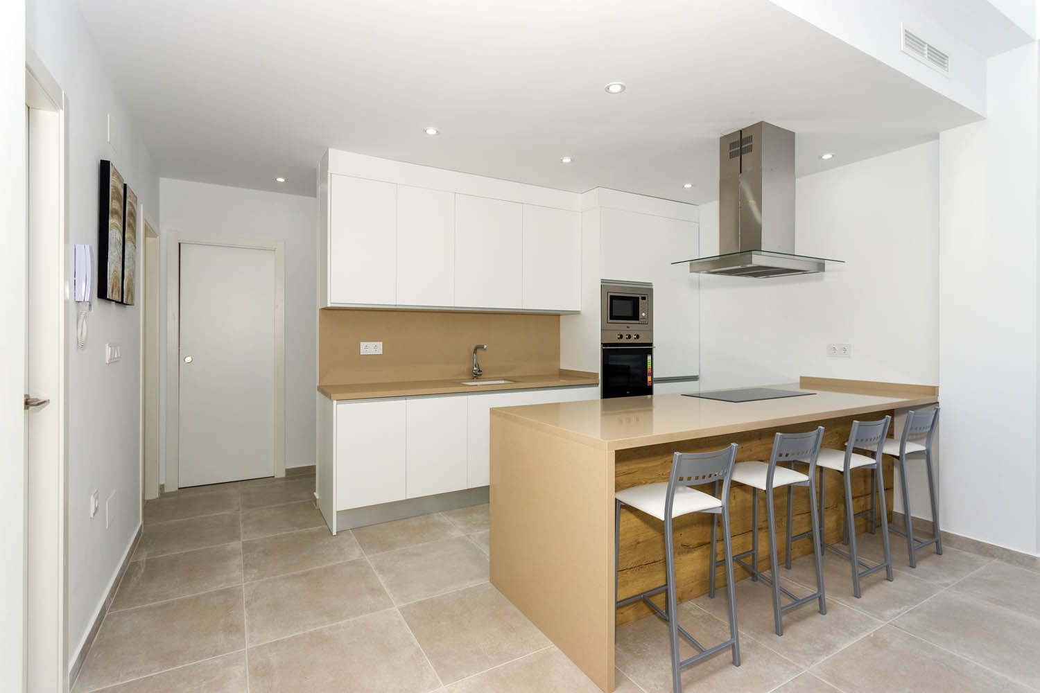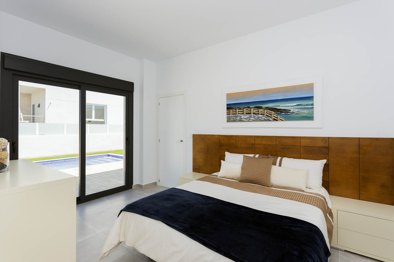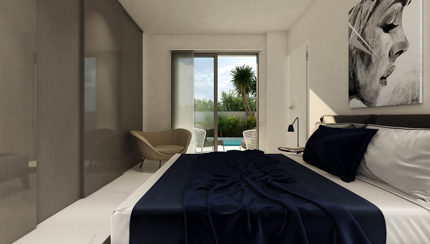 Elke villa beschikt over 3 slaapkamers en 2 badkamers, ideaal voor gezinnen of koppels die extra ruimte nodig hebben. De indeling omvat een eet- en woonkamer met een open keuken en een hoog plafond, ontworpen voor modern en functioneel wonen. De ruime terrassen bieden voldoende buitenruimte om te genieten van het mediterrane klimaat. De hoofdslaapkamer heeft een optie voor een inloopkast en en-suite badkamer.