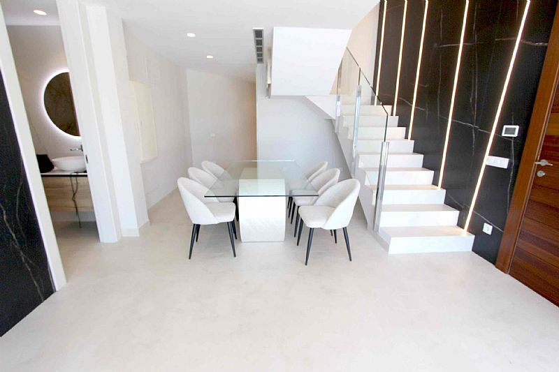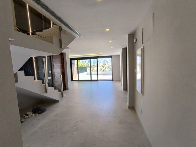 De woningen zijn uitgerust met geavanceerde technologieën zoals een domoticasysteem, alarmsysteem en beveiligingscamera’s. Voor extra comfort is er vloerverwarming, een warmtepomp voor het zwembad en een privé jacuzzi op de bovenste terrassen, perfect om te ontspannen met uitzicht op zee.Laatste kans: luxe duplex beschikbaar